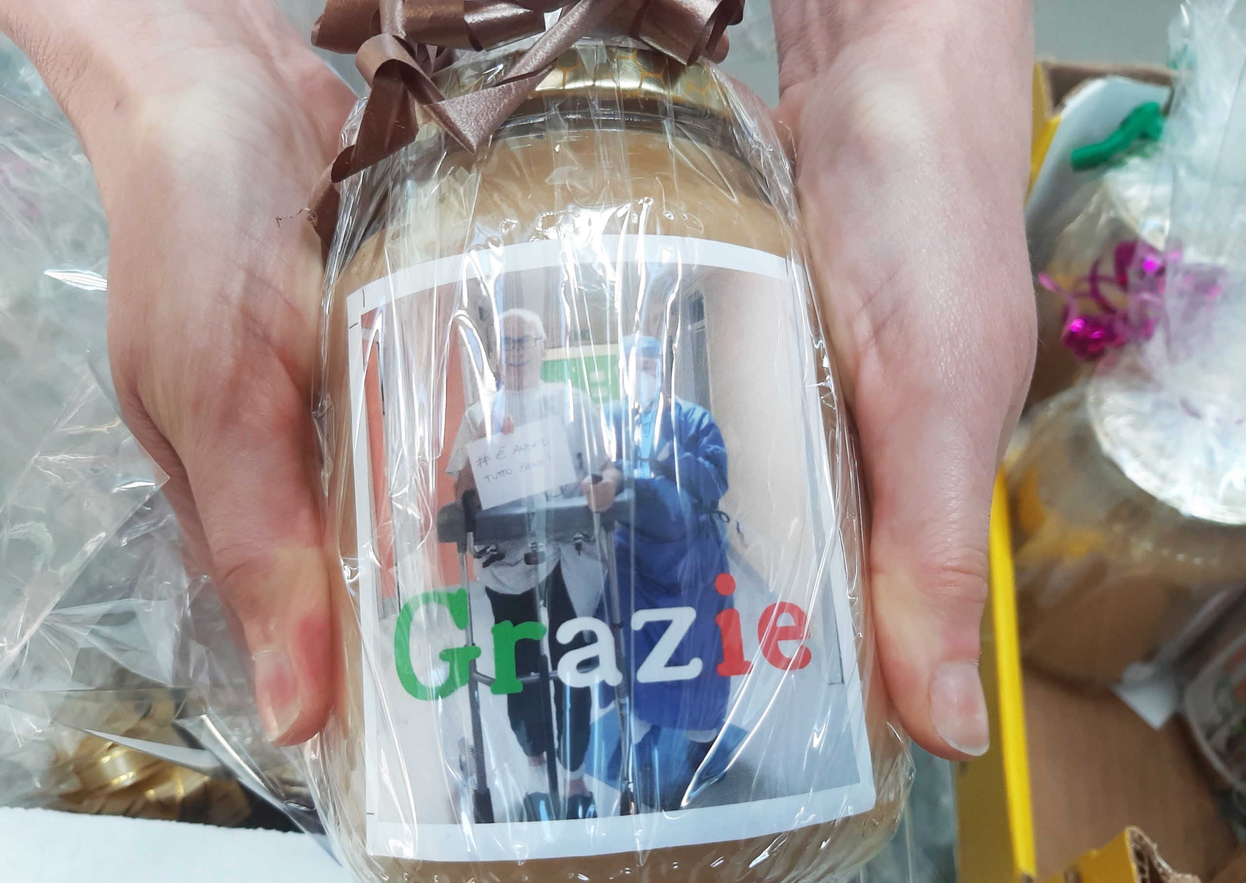 - Un vasetto di miele ‘personalizzato’ con il ringraziamento del sig. Ansaloni agli operatori dell’ospedale di Sassuolo