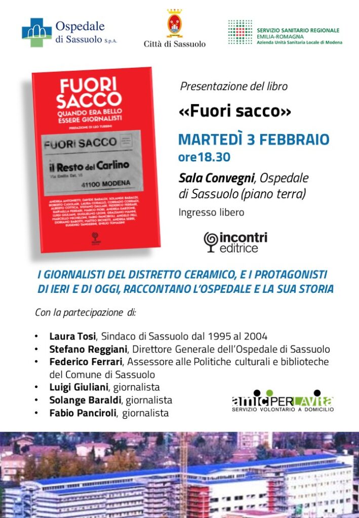 L’appuntamento è per martedì 3 febbraio, a partire della ore 18.30, in Ospedale a Sassuolo. Luogo ‘simbolo’ della città, che ha appena compiuto 20 anni (nel 2025) … Ma anche di più: un vero e proprio punto di riferimento per l’intera comunità. Per questo motivo il gruppo di 23 giornalisti autori del libro hanno chiesto di poter presentare il loro lavoro proprio all’interno dell’Ospedale, nella ‘Sala Convegni’ intitolata in memoria del Dr. Marco Grandi.