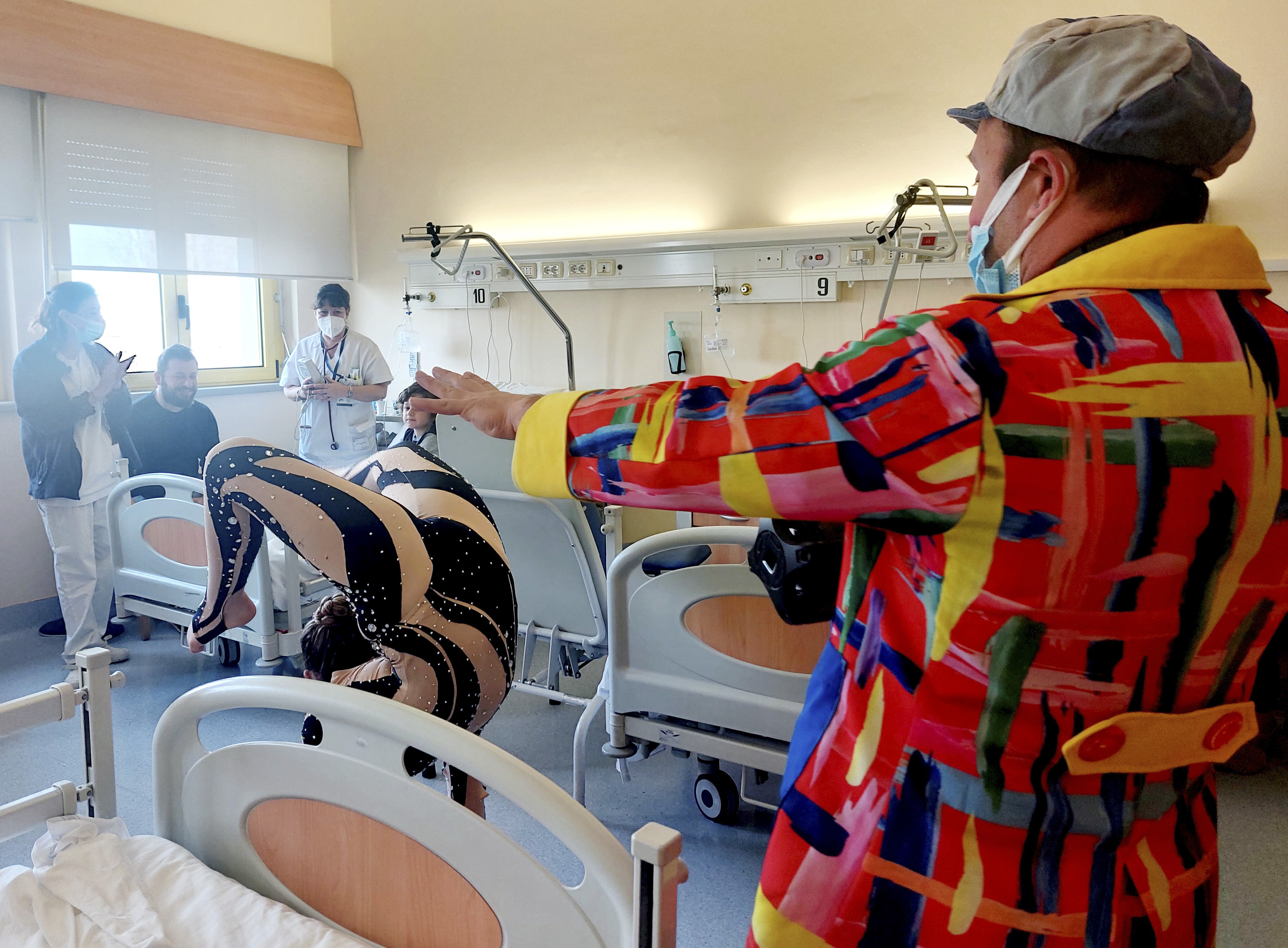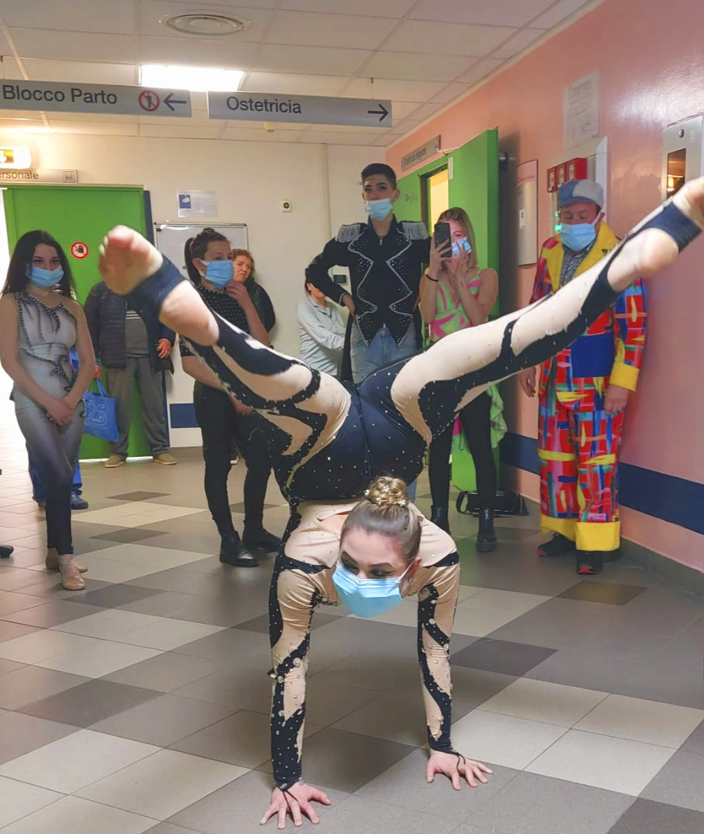 5 marzo 2024 – Una visita davvero speciale questa mattina in pediatria a Sassuolo. Sono arrivati ‘a sorpresa’ alcuni acrobati del ‘Circo Maya Orfei Madagascar’ che fino al 10 marzo è ospite a Villalunga di Casalgrande, per portare un sorriso ai piccoli pazienti ricoverati. Tra loro il giovanissimo Nathan, vincitore del Festival Internazionale del Circo di Latina, Nicole, Kimberly, il clown Cirillino (Eric Ardisson), Federica Napoli, Riccardo Serra e Shamira Casu.